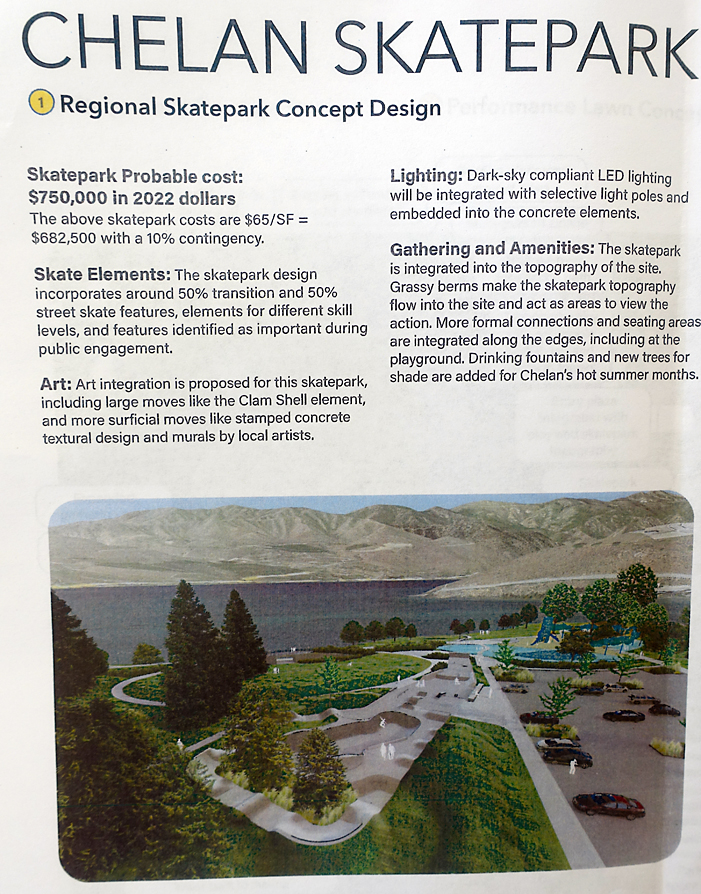 McCardle said the skate park was predominately for the local community. She said that a survey that was held was answered by 70% who did not live in the City and 22% that were 18 and under. “Don Morse is already overcrowded,” said McCardle who wants to explore the South Chelan area and ball fields as a potential location.