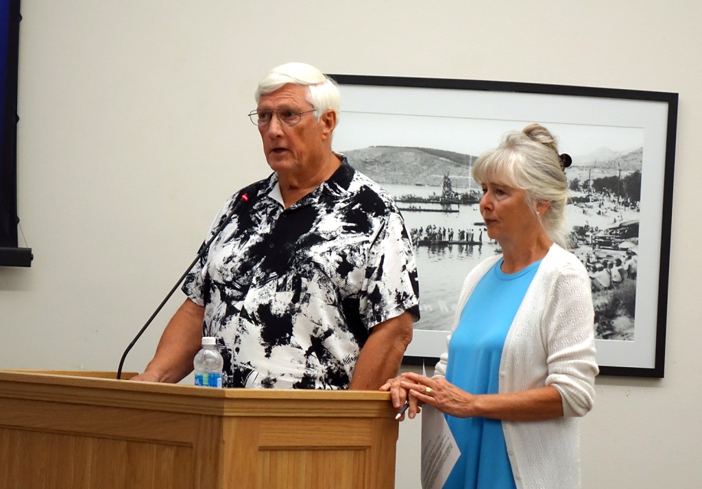 Paul Rodgers and his wife Carol, residents of Chelan Hills, were back at the dais at the Tuesday evening, August 22, City Council meeting during the Citizen Comment period reminding the Council that it has now been a year since the 100 year torrential rain storm flooded the community causing thousands of dollars worth of damage to residential property.
