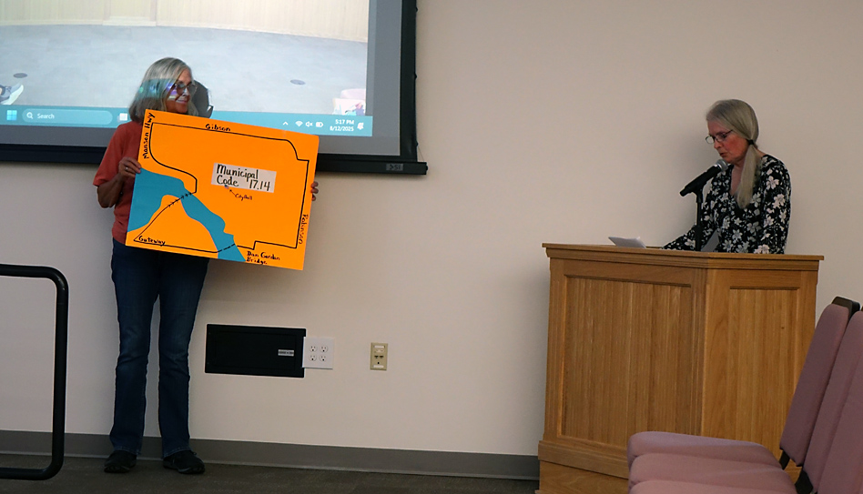 Lynette Grandy and friend addressed city council regarding the new law allowing parent lots being subdivided.