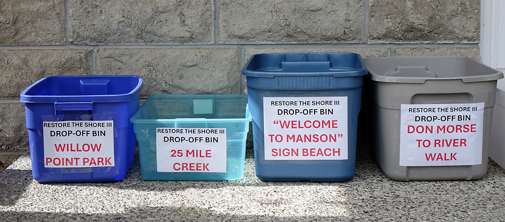 At the parking lot, students from The Chelan Project will be organizing groups to cover specific sections of beach. A certain number of canvas bags and 5-gallon buckets will be provided for people to use, but we ask that you please return them to us at the end of the cleanup.