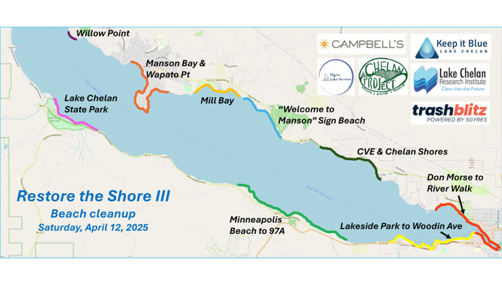 Volunteers will help restore the shores of Lake Chelan this coming Saturday, April 12 as the third annual Restore the Beach project gets underway at 9:30 a.m.